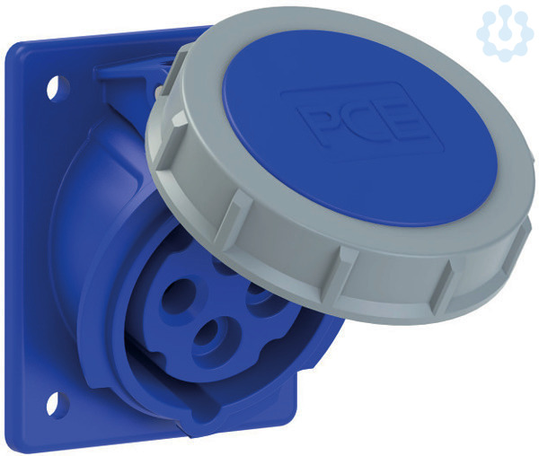 CEE-Anbausteckdose schräg (70x85mm) 16A 4p 9h IP67 TT; Gehäusematerial: PA6; Nennstrom: 16A; Polzahl: 4 (3P+PE); Uhrzeit-Stellung: 9h; Nennspannung/Frequenz: 200-250V~ / 50+60Hz; Kontakte: Messing; Anschlusstechnik: schraublose Anschlusstechnik (TT); Abmessungen (Flansch/Bohrung): 70x85 mm / 50x65 mm; Schutzart: IP67