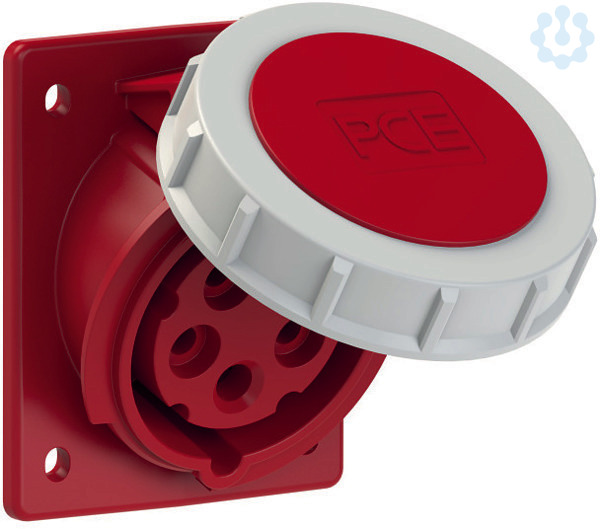 CEE-Anbausteckdose schräg (80x97mm) 16A 5p 6h IP67; Gehäusematerial: PA6; Nennstrom: 16A; Polzahl: 5 (3P+N+PE); Uhrzeit-Stellung: 6h; Nennspannung/Frequenz: 200/346V~ - 240/415V~ / 50+60Hz; Kontakte: Messing; Anschlusstechnik: Schraubklemmen; Abmessungen (Flansch/Bohrung): 80x97 mm / 60x73 mm; Schutzart: IP67