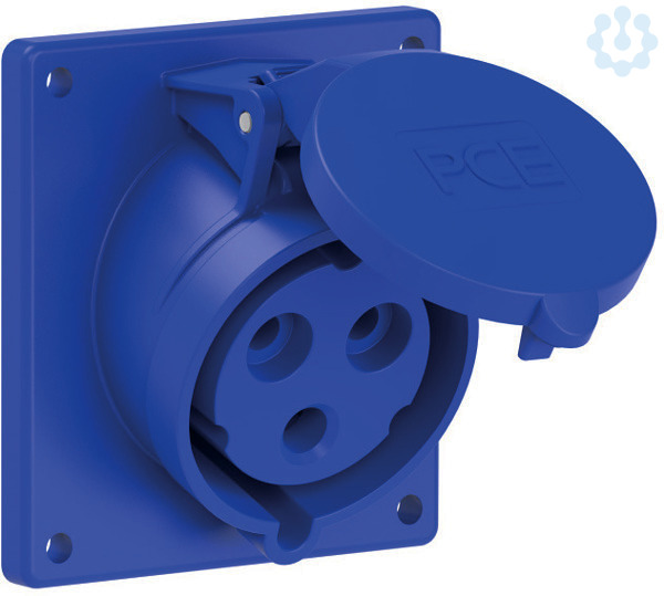 CEE-Anbausteckdose schräg (92x100mm) 32A 3p 6h IP44/IP54; Gehäusematerial: PA6; Nennstrom: 32A; Polzahl: 3 (2P+PE); Uhrzeit-Stellung: 6h; Nennspannung/Frequenz: 200-250V~ / 50+60Hz; Kontakte: Messing; Anschlusstechnik: Schraubklemmen; Abmessungen (Flansch/Bohrung): 92x100 mm / 77x85 mm; Schutzart: IP44/IP54