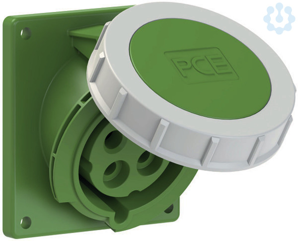 CEE-Anbausteckdose schräg (92x100mm) 32A 4p 10h IP67; Gehäusematerial: PA6; Nennstrom: 32A; Polzahl: 4 (3P+PE); Uhrzeit-Stellung: 10h; Nennspannung/Frequenz: >50V~ / 100-300Hz; Kontakte: Messing; Anschlusstechnik: Schraubklemmen; Abmessungen (Flansch/Bohrung): 92x100 mm / 77x85 mm; Schutzart: IP67