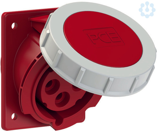 CEE-Anbausteckdose schräg (80x97mm) 32A 4p 3h IP67; Gehäusematerial: PA6; Nennstrom: 32A; Polzahl: 4 (3P+PE); Uhrzeit-Stellung: 3h; Nennspannung/Frequenz: 380/440V~ / 50/60Hz; Kontakte: Messing vernickelt; Anschlusstechnik: Schraubklemmen; Abmessungen (Flansch/Bohrung): 80x97 mm / 60x73 mm; Schutzart: IP67