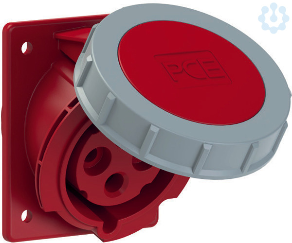 CEE-Anbausteckdose schräg (80x97mm) 32A 4p 6h IP67 TT; Gehäusematerial: PA6; Nennstrom: 32A; Polzahl: 4 (3P+PE); Uhrzeit-Stellung: 6h; Nennspannung/Frequenz: 380-415V~ / 50+60Hz; Kontakte: Messing; Anschlusstechnik: schraublose Anschlusstechnik (TT); Abmessungen (Flansch/Bohrung): 80x97 mm / 60x73 mm; Schutzart: IP67