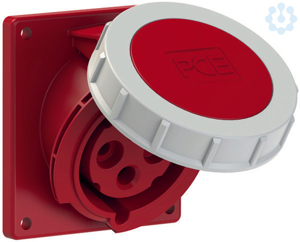 CEE-Anbausteckdose schräg (92x100mm) 32A 4p 6h IP67; Gehäusematerial: PA6; Nennstrom: 32A; Polzahl: 4 (3P+PE); Uhrzeit-Stellung: 6h; Nennspannung/Frequenz: 380-415V~ / 50+60Hz; Kontakte: Messing; Anschlusstechnik: Schraubklemmen; Abmessungen (Flansch/Bohrung): 92x100 mm / 77x85 mm; Schutzart: IP67