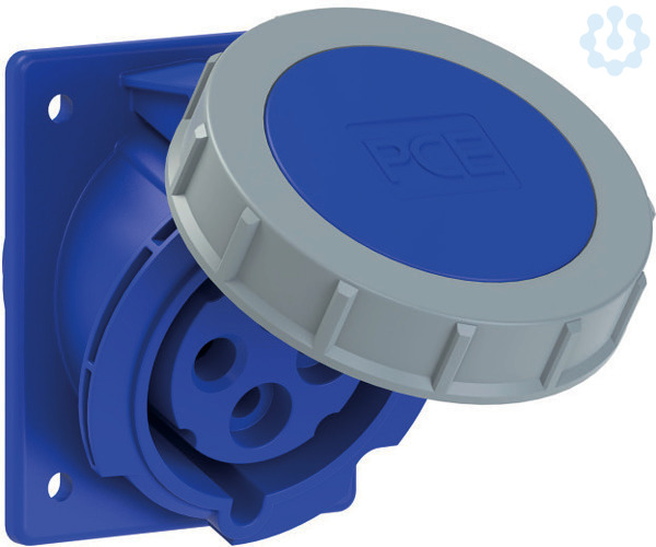 CEE-Anbausteckdose schräg (80x97mm) 32A 4p 9h IP67 TT; Gehäusematerial: PA6; Nennstrom: 32A; Polzahl: 4 (3P+PE); Uhrzeit-Stellung: 9h; Nennspannung/Frequenz: 200-250V~ / 50+60Hz; Kontakte: Messing; Anschlusstechnik: schraublose Anschlusstechnik (TT); Abmessungen (Flansch/Bohrung): 80x97 mm / 60x73 mm; Schutzart: IP67