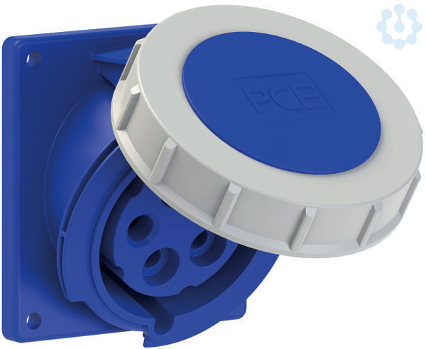 CEE-Anbausteckdose schräg (92x100mm) 32A 5p 9h IP67; Gehäusematerial: PA6; Nennstrom: 32A; Polzahl: 5 (3P+N+PE); Uhrzeit-Stellung: 9h; Nennspannung/Frequenz: 120/208V~ - 144/250V~ / 50+60Hz; Kontakte: Messing; Anschlusstechnik: Schraubklemmen; Abmessungen (Flansch/Bohrung): 92x100 mm / 77x85 mm; Schutzart: IP67