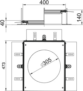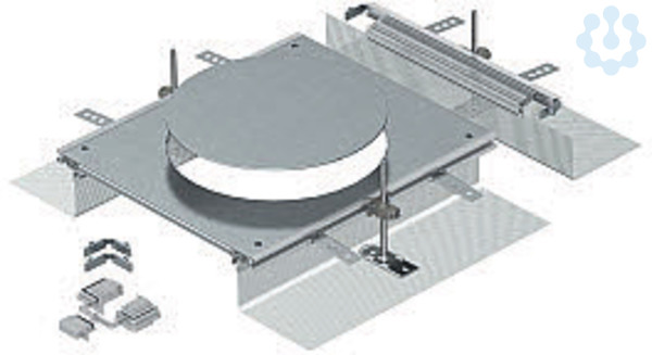 Montagefertige Kanalanbaueinheit mit einem Geräteeinbaudeckel zum Einbau einer Einbaueinheit der Nenngröße R9, bestehend aus Seitenprofilen mit angesetzter flexibler Seitenwand aus Metallgewebe, Bodenbelaganlegeprofilen, Kanaldeckel mit blind verschlossener Montageöffnung und einem Kanalendstück. Im Lieferumfang enthalten sind 3 höhennivellierbare Befestigungswinkel, 3 Estrichanker, 1 Deckelstoßunterstützung (ohne Nivelliereinheit - bitte separat bestellen) und 1 Bausatz für Winkelabzweig.