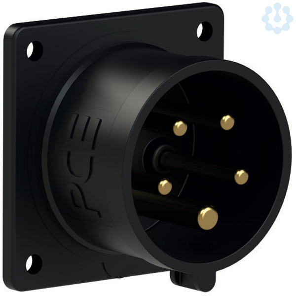 CEE-Anbaugerätestecker 70x70 gerade 16A 5p 6h IP44 schwarz; Gehäusematerial: PA6; Nennstrom: 16A; Polzahl: 5 (3P+N+PE); Uhrzeit-Stellung: 6h; Nennspannung/Frequenz: 200/346V~ - 240/415V~ / 50+60Hz; Kontakte: Messing; Anschlusstechnik: Schraubklemmen; Abmessungen (Flansch/Bohrung): 70x70 mm / 56x56 mm; Schutzart: IP44