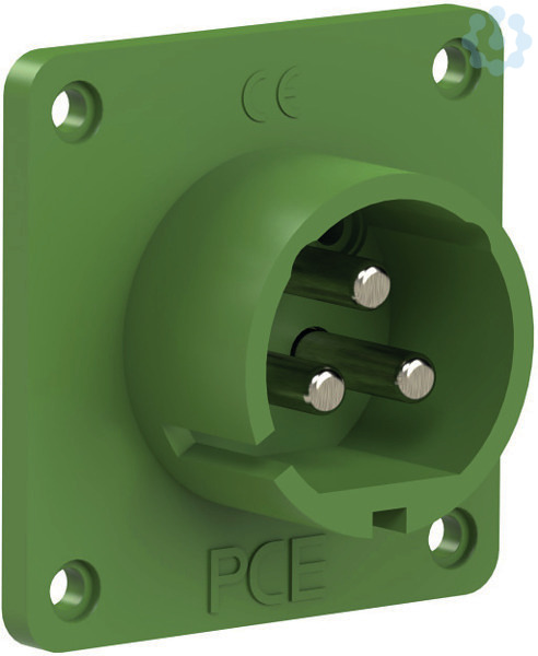 CEE-Anbaugerätestecker gerade 70x70mm 32A 3p 24/42VAC 100-200Hz IP44 TWIST; Gehäusematerial: PA6; Nennstrom: 32A; Polzahl: 3 (3P); Uhrzeit-Stellung: 4h; Nennspannung/Frequenz: 24/42V~ / 100-200Hz; Kontakte: Messing vernickelt; Anschlusstechnik: Schraubklemmen; Abmessungen (Flansch/Bohrung): 70x70 mm / 56x56 mm; Schutzart: IP44