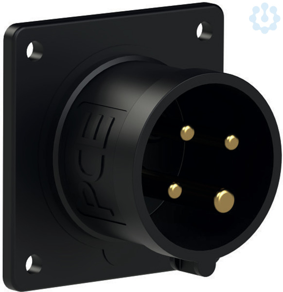 CEE-Anbaugerätestecker 70x70 gerade 16A 4p 7h IP44; Gehäusematerial: PA6; Nennstrom: 16A; Polzahl: 4 (3P+PE); Uhrzeit-Stellung: 7h; Nennspannung/Frequenz: 480-500V~ / 50+60Hz; Kontakte: Messing; Anschlusstechnik: Schraubklemmen; Abmessungen (Flansch/Bohrung): 70x70 mm / 56x56 mm; Schutzart: IP44
