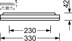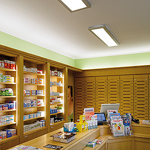 Besonders flach gestaltetes Leuchtengehäuse, Aluminiumstrangpressprofil natur eloxiert, sichtbare Bauhöhe 30mm, Stirnseiten und Seitenteile aus natur eloxiertem Aluminium mit durchlaufender Längsnut, zur Leuchtenunterseite hin abgerundet. Lichtverteilung direkt/indirekt strahlend, Direktanteil mittels geeister Scheibe aus PMMA, homogener Lichtsaustritt durch seitliche LED-Lichteinkopplung sowie aufliegendem Aluminium-Reflektor in hochreflektierend weißer Beschichtung, mit Micro-Lochung für eine leichte Deckenaufhellung. LED Treiber Design integriert. Elektrischer Anschluss über 3-polige Anschlussklemme in Steckkontakt-Technik.