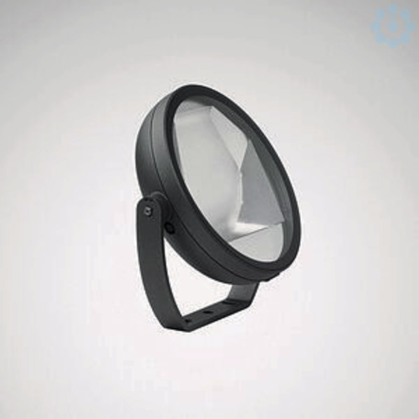 Runder, kompakter LED-Scheinwerfer. Die Leuchte ist Teil einer Baureihe mit Varianten, die unterschiedliche beleuchtungstechnische Anforderungen bei gleichem Leuchtendesign abdecken. Zur direkten Montage auf festem Untergrund. Mit Erdspieß (Zubehör) für Befestigung im Erdreich geeignet. Spiegelreflektor aus eloxiertem Aluminium. Mit asymmetrisch mittelbreit strahlender Lichtstärkeverteilung. Bemessungslichtstrom 2600 lm, Bemessungsleistung 40,00 W, Leuchten-Lichtausbeute 65 lm/W. Lichtfarbe warmweiß, ähnlichste Farbtemperatur (CCT) 3000 K, allgemeiner Farbwiedergabeindex (CRI) Ra > 80. Farborttoleranz (initial MacAdam) ≤ 3 SDCM. Mittlere Bemessungslebensdauer L80(tq 25 °C) = 50.000 h. Die Lichtquelle ist entsprechend der Ökodesign-Anforderungen (VO (EU) 2019/2020) austauschbar. Runder, flacher Leuchtenkörper aus korrosionsbeständigem Aluminium-Druckguss. Oberfläche anodisiert und anschließend mit einer Epoxy-Pulvergrundierung und alterungsbeständigen Polyester-Pulverbeschichtung versehen. Befestigungsbügel aus verzinktem Stahl. Farbe Leuchtenkörper anthrazit (DB 703). Der Leuchtenkörper kann auf Anfrage ohne Mehrkosten in nachfolgenden Farben ausgeführt werden: Schwarz texturisiert (Akzo Nobel 8118669, ähnlich RAL 9005), Weiß texturisiert (Akzo Nobel 8158870, ähnlich RAL 9016), Grau texturisiert (Akzo Nobel 8129595, ähnlich RAL 9006). Weitere Farbvarianten nach RAL oder DB Farbcode sind auf Anfrage gegen Mehrpreis möglich. Länge 102 mm, Leuchtenhöhe 256 mm, Breite 268 mm. Leuchtenkopf Ø 230 mm. Mit planer Abschlussscheibe, extraklar. Zentrales Gelenk zur Drehung und Schwenkung auf zwei Achsen mit Arretierungssystem für die präzise Strahlerausrichtung. Horizontaler Drehbereich: 330°, Schwenkbereich - 45° - 90°. Mit Gehäuseschrauben aus Edelstahl. Schutzklasse (EN 61140): I, Schutzart (DIN EN 60529): IP65, Stoßfestigkeitsgrad nach IEC 62262: IK10. Gewicht: 3,3 kg. Mit 5-poliger Anschlussleitung 5 x 0,75 mm2, 1500 mm. Mit elektronischem Betriebsgerät, digital dimmbar (DALI). Stoßspannungsfestigkeit Differential Mode / Common Mode: 1 kV / 2 kV. Das Produkt erfüllt die grundlegenden Anforderungen der anwendbaren EU-Richtlinien und des Produktsicherheitsgesetzes und trägt die CE-Kennzeichnung.