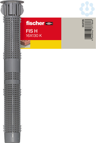 Die fischer Injektions-Ankerhülse FIS H K ist die Systemkomponente für eine fachgerechte und mörtelsparende Montage der Ankerstange FIS A oder des Innengewindeankers FIS E in Lochstein-Mauerwerk. Dazu können die fischer Injektionsmörtel FIS V, FIS VW HIGH SPEED, Multifunktionsmörtel, Montagemörtel und Montagemörtel Green verwendet werden. Die optimierte Gitterstruktur reduziert den Verbrauch des Injektionsmörtels. Beim Setzen der Ankerstange und des Innengewindeankers wird der Mörtel durch die Gitterstruktur gedrückt und verbindet sich im Formschluss mit dem Lochstein. Dadurch wird die Last in den Baustoff geleitet. Das Setzen erfolgt in der Vorsteckmontage. Mit der Injektions-Ankerhülse können nicht tragende Schichten überbrückt werden. Die Zulassungen der jeweiligen Injektionsmörtel sind zu beachten.