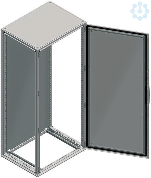 Spacial SF Anreihschrank Stahlgehäuse mit Volltür an der Vorderseite. Montiert. Verschraubte Rückwand. Ohne Montageplatte. 4-Punkt-Verschlusssystem mit Griff und 5 mm Doppelbartschliessung. Verzinkter Stahl für Rahmen und Stützen. Schutzart IP 55, IK10, Farbe RAL 7035. Inklusive 4 Halterungen für die Montageplatte.