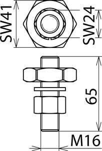Anschlussstück zum Anschrauben, mit Gewindebolzen und loser Sechskantmutter als erdseitige Anschließstelle nach DIN VDE 0683-100 (EN/IEC 61230) an der Erdungsanlage.