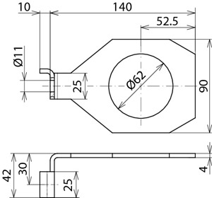 Anschlussbügel IF1 abgewinkelt Bohrdurchmesser d1 62 mm