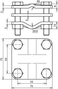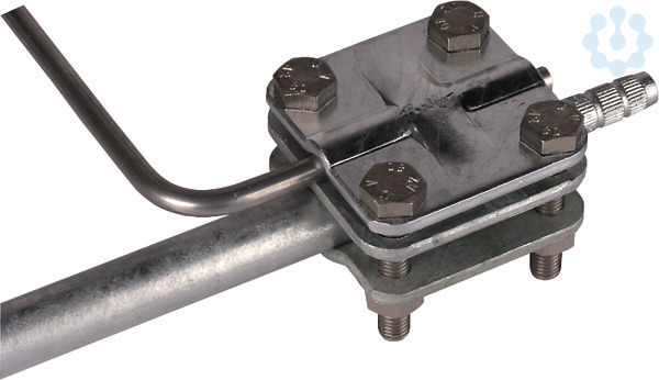 Anschlussklemme nach DIN EN 62561-1, zum Kreuz- und Parallelanschluss von Rundleitern, Flachbändern oder Seilen an Tiefenerdern. Ausführung für Tiefenerder Ø20-30 mm, mit vier Schrauben M10.