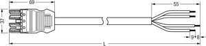 Anschlussleitung 5m Buchse/offenes Ende schw. 4x1,5qmm