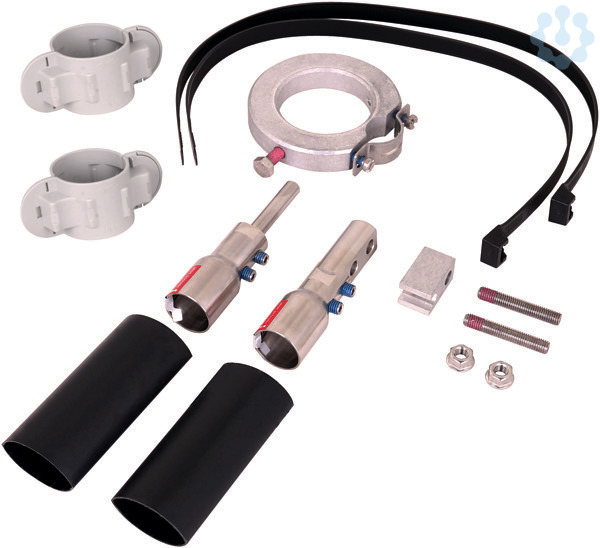 Anschlussset für HVI power Leitung zur Verlegung an HVI power Stützrohren GFK / Al bestehnd aus Anschlusselemente, Gewindestifte, Anschlussteil, Schrumpfschlauch, Kabelbinder und Befestigungsring mit einem geschlitzen Leitungshalter (Ø27 mm).
