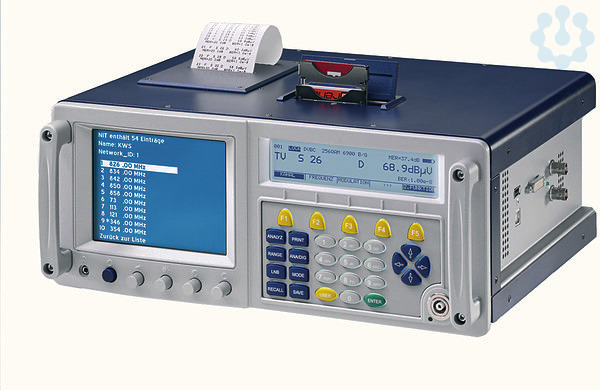 Antennenmessempfänger mit 5,5“ Farb-TFT – Frequenzbereich TV: 5–1.214 MHz – Pegelmessung FM, Rückkanal – Bilddarstellung für Analog-TVund DVB-C – Pegel-/BER-/MER-/Packet-Error-Messung/Konstellationsdiagramm für DVB-C – HEVC/UHD-Decoder mit 2 × Common-Interface (CI)/NIT-Auswertung – DVI-out, ASI-in/out über BNC – EMI-Messung – Spektrumanalysator für alle Bereiche, TILT-Funktion – Brummspannungs- und Phasenjitter-Nachweis bei CATV-Signalen – USB-Schnittstelle für Messprotokolle, Screenshots und Software-Updates – Li-Ion Akkupack 14,4 V/6,6 Ah – Messkabel, Netzkabel, USB-Stick Diverse Optionspakete wie DVB-S/S2 und DVB-T/T2, separat auf Anfrage erhältlich""