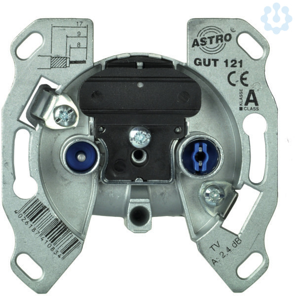 Stichleitungsdose (Einzeldose) mit sehr geringer Anschlussdämpfung (durchschnittlich 2 dB). (entspricht GUT 121) Einsätze bis 862 MHz Einsätze der Fa. ASTRO (Bezeichnung jeweils in Klammern) mit Buchse (RF) und Stecker (TV) zum Anschluss eines Tonrundfunkempfängers und eines Fernsehrundfunkempfängers. Für Koaxialkabel mit Außenleiter bis o 5,5mm Die Antennendosen sind geeignet für den Anschluss an - eine terrestrische Empfangsanlage. oder - einen BK-Anschluss Die Antennendosen sind rückkanaltauglich für einen Frequenzbereich von 4 MHz bis 20 MHz. Die Antennendosen sind DBP-zugelassen nach 1 R8- 15. Grundsätzlich sollen - Stichleitungsdosen nur für eine Sternverkabelung - am Ende einer Stammleitung wiederum eine Stammleitungsdose mit Abschlusswiderstand eingesetzt werden. Schirmungsmaß > 85 dB. entspricht der Klasse A.