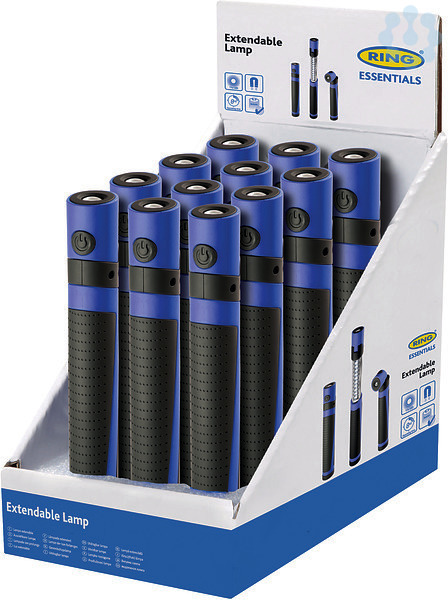 Die Inspektionslampe RIL80 Extendable Lamp ist eine helle, ausziehbare LED-Inspektionslampe. Diese geht automatisch an, wenn die Lampe ausgezogen wird. Außerdem gibt es noch eine Taschenlampen-Funktion, diese wird über einen Ein/Aus-Schalter bedient. Die Taschenlampe kann bis zu 90 Grad abgewinkelt werden. Am Lampenfuß ist ein Magnet angebracht. Ring Automotive Inspektionsleuchten gehören zu den qualitativ hochwertigsten Inspektionslampen, die durch höchste Standards überzeugen und neue Maßstäbe im LED-Inspektionslampen-Bereich setzen. Die Ring Inspektionslampen können sowohl für die Reparatur als auch für die Fehlersuche eingesetzt werden. Was es auch zu tun gibt: Ring Automotive hat immer die richtige Inspektionslampe für Sie. Hell, tragbar, aufladbar und robust genug, um Öl, Schmutz und raues Handling in einer Werkstatt auszuhalten.