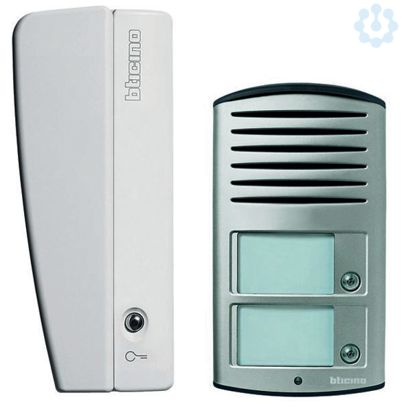 Analoges Audio-Set SWING mit LINEA 2000, AP Das Set enthält: Eine AP-Türstation LINEA 2000 mit 2 beleuchteten Namensschildern, ein Netzgerät, zwei SWING-Hausstationen mit Ruflautstärkeregler und Türöffnertaste.