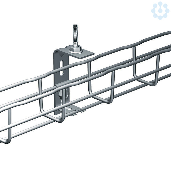 Aufhaengungsbuegel in Edelstahl V4A (1.4404), zur Deckenbefestigung von Gitterrinnen der Breite 50 mm (in Kombination mit Ausleger UC 50 und Gewindestange).