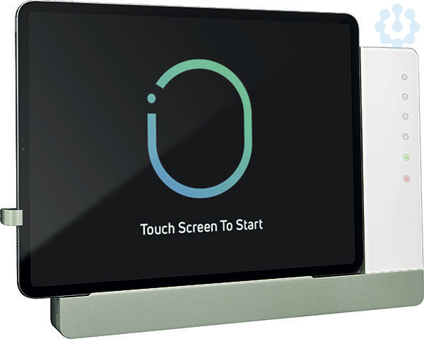 Aufputz Dockingstation mit Ladefunktion, iPad-Verriegelung und Steuerungsfunktionalität, Gehäuse blau, Glas weiß, USB-C Anschluss, inklusive POE+ Injektor, Audio Ausgang, USB-A Ausgang, kompatibel zu vielen Tablets durch schiebbaren Ladestecker