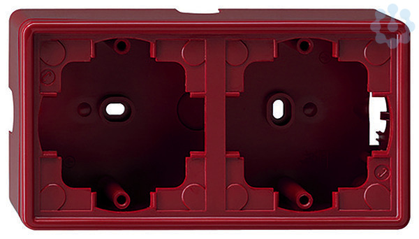 Aufputz-Gehäuse, komplett mit Abdeckrahmen Rot 2fach - Mit Leitungs- und Kanaleinführung. Wippschalter, Taster und SCHUKO-Steckdosen mit Klappdeckel sind bei S-Color auf der Wand in Verbindung mit diesen Gehäusen generell tropfwassergeschützt (IP21). Schlüsselschalter und 3-Stufenschalter können nicht in diese Gehäuse eingebaut werden.
