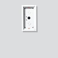 Aufputzgehäuse aus Aluminium-Strangpressprofil mit Zink-Druckguss-Eckverbindern und Stahlblechbodenplatte für 2 Funktionsmodule.