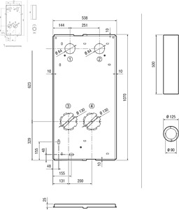 Rohbaumontage-Set zum Einbau auf die Außenwand für Lüftungsgerät mit Wärmerückgewinnung WS 75 Powerbox H für eine Wandstärke bis 500 mm. Lieferumfang: Einbaukasten (Breite x Höhe x Tiefe: 538 x 1070 x 25 mm) mit integrierter Bohrschablone, Zwei Wandhülsen (Ø 125 mm Außen, Ø 90 mm Innen, Länge 500 mm) aus EPP mit jeweils zwei PutzschutzdeckelnArtikel: WS 75 RSAP, Material Gehäuse: Stahlblech, pulverbeschichtet, Farbe: verkehrsschwarz RAL 9017, Gewicht: 5,31 kg, Gewicht mit Verpackung: 7,06 kg, Breite: 538 mm, Höhe: 1070 mm, Tiefe: 25 mm, Breite mit Verpackung: 595 mm, Höhe mit Verpackung: 1130 mm, Tiefe mit Verpackung: 210 mm
