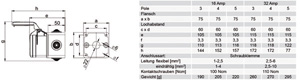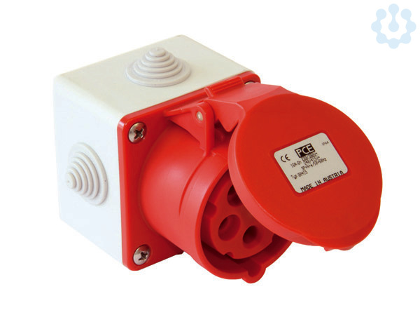 Aufputzdose komplett 16A 5p 6h IP44 (2 Nippel, mit Schraubklemmen, Gehäusematerial: PA6, Kontakte: Messing, Flansch: 75x75)