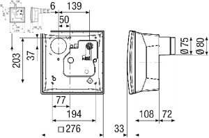 Ausführung mit Brandschutz: Aufputzgehäuse mit wartungsfreier Brandschutz-Metall-Absperrklappe gegen Brandübertragung K90-18017. Selbsttätige Brandschutz-Metall-Absperrklappe mit der gleichzeitigen Funktion als Kaltrauchsperre. Besondere Eigenschaften: Für Anwendungen nach DIN 18017-3. Aufputzgehäuse zur Aufnahme des Ventilatoreinsatz ER EC in Kombination mit den Abdeckungen der ER-A... Reihe. Einbau in Bäder, WCs und Wohnungsküchen. Wand-/ oder Deckenmontage möglich. Gehäuse drehbar, dadurch Anschluss des Ausblasstutzen links oben oder rechts oben an die Hauptleitung. Elektrischer Anschluss hinten. Einfache elektrische Verdrahtung an praktischer Stiftleisten-Klemme. Anschlussdurchmesser DN 75/80. Kunststoffteile normal entflammbar nach DIN 4102-1 Klasse B 2 (nach EN 13501-1). Farbe verkehrsweiß ähnlich RAL 9016. Einfache Montage. Zulassungsbescheide auf Anfrage oder auf unserer Homepage www.maico-ventilatoren.com.Artikel: ER GH APB, Ausführung: mit Brandschutz, Luftrichtung: Entlüftung, Spannungsart: Wechselstrom, Bemessungsspannung: 230 V, Netzfrequenz: 50 Hz, Schutzart: IP X5, Netzzuleitung: 3/5 x 1,5 mm2, Einbauort: Wand / Decke, Einbauart: Aufputz, Material Gehäuse: ABS-Kunststoff, Farbe: verkehrsweiß, ähnlich RAL 9016, Gewicht: 0,87 kg, Gewicht mit Verpackung: 1,06 kg, Brandschutz: ja, Ausblasrichtung: hinten, Anschlussdurchmesser: 75 mm / 80 mm, Breite: 276 mm, Höhe: 276 mm, Tiefe: 180 mm, Breite mit Verpackung: 350 mm, Höhe mit Verpackung: 140 mm, Tiefe mit Verpackung: 290 mm