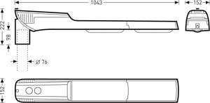 LED-Mastleuchte für Aufsatzmontage. Mit intelligentem Label zum schnellen Aufrufen von Leuchten-Informationen mittels QR-Code. Mit Leistungsreduzierung bei Abschaltung einer Steuerphase. Das Abschalten einer Steuerphase bewirkt eine Einstellung des Leuchtenlichtstroms auf 50 %. Aufsatzleuchte für Mastzopf Ø 76 mm. Neigungswinkel für Aufsatzmontage 0°, 10° einstellbar. Die Mastbefestigung erfolgt mit zwei Befestigungsschrauben nach EN 60598-2-3 aus Edelstahl. Passender Mast auf Anfrage. Optisches System in Multi-Lens-Technologie (MLT) ausgeführt. Leuchtenoptik bestehend aus hocheffizienten, UV- und temperaturbeständigen Linsensystemen. Mit asymmetrisch breit strahlender Lichtstärkeverteilung. Zur flexiblen Anpassung an kundenspezifische Beleuchtungsaufgaben stehen weitere Abstrahlcharakteristiken zur Verfügung. LED-System bestehend aus 8 MLT-LED-Modulen mit jeweils 4 LED. Bemessungslichtstrom 8200 lm, Bemessungsleistung 55,00 W, Leuchten-Lichtausbeute 149 lm/W. Lichtfarbe neutralweiß, ähnlichste Farbtemperatur (CCT) 4000 K, allgemeiner Farbwiedergabeindex (CRI) Ra > 70. Farborttoleranz (initial MacAdam) ≤ 5 SDCM. Weitere LED-Lichtfarben auf Anfrage verfügbar. Mittlere Bemessungslebensdauer LCLO(tq 25 °C) = 100.000 h. Die Lichtquelle ist entsprechend der Ökodesign-Anforderungen (VO (EU) 2019/2020) austauschbar. Leuchtenkörper aus Aluminium-Druckguss. Farbe anthrazit, ähnlich DB 703. Seewetter geeignete Beschichtung auf Anfrage. Maße (L x B): 1043 mm x 152 mm, Leuchtenhöhe 222 mm. Schutzklasse (EN 61140): II, Schutzart (DIN EN 60529): IP66, Stoßfestigkeitsgrad nach IEC 62262: IK06. Mast auf Anfrage erhältlich. Windangriffsfläche fw 0,100 m2. Gewicht: 7,2 kg. Mit elektronischem Betriebsgerät, schaltbar. Betriebsgerät gemäß DALI-2-Standard (EN 62386). Das Betriebsgerät ist entsprechend der Ökodesign-Anforderungen (VO (EU) 2019/2020) austauschbar. Stoßspannungsfestigkeit 6 kV. Parametrierbares Vorschaltgerät mit Lichtstromkonstanthaltung (CLO). Anschlussleistung am Ende der Lebensdauer: 58,00 W. Das Produkt erfüllt die grundlegenden Anforderungen der anwendbaren EU-Richtlinien und des Produktsicherheitsgesetzes und trägt die CE-Kennzeichnung. Zusätzlich ist die Leuchte durch eine unabhängige Prüfstelle ENEC-zertifiziert.