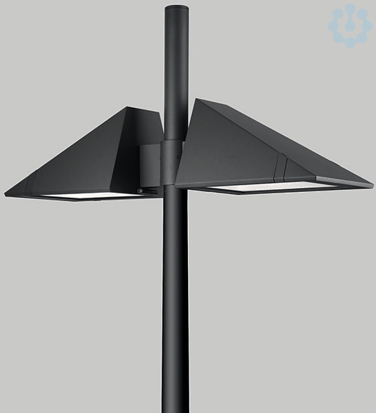 BEGA Aufsatzleuchte 84242K3 in 2-fach-Anordnung. Asymmetrisch-bandförmige Lichtstärkeverteilung. LED 18,5 W Leuchten-Anschlussleistung, Leuchten-Lichtstrom 2374 lm, Farbtemperatur 3000 K. Farbwiedergabeindex (CRI) > 80 je Leuchtenkörper. Mit austauschbaren BEGA LED-Modulen mit Übertemperaturschutz und einer Lebenserwartung von mindestens 50.000 Betriebsstunden. 20-jährige Nachliefergarantie auf LED-Module und Verschleißteile. Mit BEGA Ultimate Driver® 2 LED-Netzteilen, DALI-steuerbar?, 220-240 V, 0/50-60 Hz. Schutzart IP 66. Leuchte aus Aluminiumguss, Aluminium und Edelstahl Beschichtungstechnologie BEGA Unidure® , Farbe Grafit. Sicherheitsgläser mit optischer Struktur. Reflektoren aus eloxiertem Reinstaluminium. Mit zwei fest angeschlossenen Anschlussleitungen X05BQ-F 5 G 1 qmm, Länge 6 m. Für Lichtpunkthöhen von 3000 - 6000 mm. Mastzopfdurchmesser 76 mm, Einstecktiefe 135 mm. Werkzeugloser Verschluss. Abmessungen: 350 x 585 x 1200 mm.