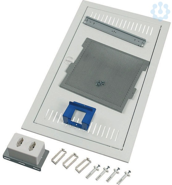 Projekte-Lieferform: Ausbausatz Multimediaverteiler KLV der zweiten Generation, Stahlblechtür mit Ventilationsöffnungen, flaches Türrahmendesign, optional Tür mit Rahmen in RAL-Wunschfarbe. Lieferumfang: 1x Tragschiene, Montageplatte mikroperforiert, 1x Gerätehalter, 2x einfach Steckdosen mit Stecktechnik und Euro2-Adapter, 3D-Putzausgleich mit bis zu 18mm Tiefenausgleich, Kabelhalter, Montageanleitung. Normen: Für Multimediaanwendungen im GP-Universalgehäuse entsprechend IEC/EN 60670-24 freigegeben. Schutzklasse I