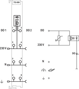 Ausgangsklemme AC230V ST753 2DO 4-L. 0,3A SSR-Relais