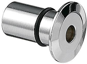 Austrittselement, für Faser S2 und S2M, chrom matt, rund. Material: Messing, Aussendurchmesser: Ø 17,5 mm, Höhe Außenring: 1,5 mm, Einbautiefe ohne Faser: 20 mm, Einbautiefe mit Faser: 100 mm, Bohrdurchmesser: Ø 10 mm, Befestigungsart: Kleben (mit Brumberg-Kleber 48290000).