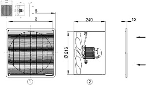 Axial-Wandventilator 500cbm/h UP 30W DN200 230VAC IP54 Stahlblech
