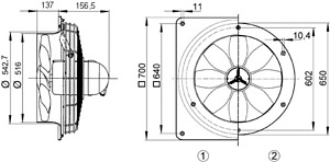 Produktausführung: Drehstrommotor, Ex II 2G Ex eb IIB+H2 T3/T4 Gb X / Ex II 2G Ex h IIB+H2 T3/T4 Gb X. Für Einsatztemperaturen von -20 °C <= Ta <= +60 °C. Für Be- oder Entlüftung umschaltbar. Besondere Eigenschaften: Axial-Wandventilator, explosionsgeschützt, Medium Gas. Explosionsschutz und Zulassungen nach ATEX und IECEx. Für alle Gase und Dämpfe der Ex-Gruppe IIA und IIB und zusätzlich für Wasserstoff qualifiziert. MAICO Ex-Ventilatoren erfüllen die Sicherheitsanforderungen der Europäischen Richtlinie RL 2014/34/EU für Geräte und Schutzsysteme in explosionsgefährdeten Bereichen. Für Zonen 1 und 2. Zündschutzarten: e - erhöhte Sicherheit und c - konstruktive Sicherheit. Schutzart IP 64. Schutzgitter auf der Saugseite, Berührungsschutz gemäß DIN EN ISO 13857. Einbau in jeder Lage möglich. Typenreihe: EZQ / DZQ .. Ex e mit quadratischer Wandplatte. EZS / DZS .. Ex e mit Stahlwandring. Laufrad: Axiallaufrad aus leitfähigem Kunststoff. Wuchtgüte der Motor-Laufradkombination G 6,3 nach Kategorie BV-3 gemäß ISO 14694. Förderrichtung: Die Förderrichtung ist gekennzeichnet. Standard Abluftbetrieb, Förderrichtung über Motor saugend. Drehstrommotor: Robuster Drehstrommotor mit Kugellager, wartungsfrei. Reversierbar. Reversierbetrieb: Der Volumenstrom verringert sich um ca. 35% bei anomaler Förderrichtung. Betriebsart S1 (Dauerbetrieb). Drehzahlregelung mit Transformator TR... möglich. Ausnahme: DZ.. 35/2 B Ex... Die Temperatur im Ventilatormotor wird durch Kaltleiter überwacht. Die Kaltleiter müssen an ein Auslösesystem (Sicherheitseinrichtung gemäß Richtlinie RL 2014/34/EU) angeschlossen werden, das den Ventilator bei zu hohen Temperaturen dauerhaft vom Netz trennt. Als Auslösesystem wird das MAICO-Kaltleiterauslösesystem MVS 6 oder TMS empfohlen. Elektrischer Anschluss: EZ .. Ex: Anschlussleitung ca. 0,5 m lang. DZ .. Ex: Anschlussleitung ca. 1,7 m lang. Separater Klemmenkasten, Ex-geschützt, mit Kabelverschraubung.Artikel: DZQ 50/4 B Ex e, Ausführung: Quadratische Wandplatte, Fördervolumen: 8200 m3/h, Drehzahl: 1440 1/min, Laufradtyp: axial, Drehzahlsteuerbar: ja, Reversierbarkeit: ja, Spannungsart: Drehstrom, Bemessungsspannung: 400 V, Netzfrequenz: 50 Hz, Nennleistung: 420 W, cosphi: 0,74, INenn: 0,82 A, Imax bei UNenn: 1,83 A, Schutzart: IP 64, Wärmeklasse: F, Einbauort: Wand / Decke, Einbauart: Aufputz, Einbaulage: senkrecht / waagerecht, Material: Stahlblech, verzinkt, Material Gehäuse: Stahlblech, verzinkt, Farbe: verzinkt, Gewicht: 24,12 kg, Gewicht mit Verpackung: 28,1 kg, Nennweite: 500 mm, Breite: 700 mm, Höhe: 700 mm, Tiefe: 293,5 mm, Breite mit Verpackung: 730 mm, Höhe mit Verpackung: 730 mm, Tiefe mit Verpackung: 420 mm, EX-Bezeichnung nach ATEX-Richtlinie: Ex II 2 G, EX-Bezeichnung nach Norm: Ex eb IIB + H2 T3 Gb / Ex h IIB + H2 T3 Gb, Ta-Umgebungstemperatur: -20 °C <= Ta <= +60 °C, IA/IN: 4,6, Zeit tA: 240 sek, Betriebsart: S1, PTC DIN 44082: M 130, EG-Baumusterprüfbescheinigung: TÜV-A 19 ATEX0102 X, IECEx EPS 19.0018X, Temperaturklasse: T3, Wärmeklasse von Isolierstoffen Th. Cl.: 155 (F)