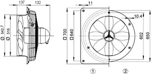 Produktausführung: Drehstrommotor, Ex II 2G Ex eb IIB+H2 T3/T4 Gb X / Ex II 2G Ex h IIB+H2 T3/T4 Gb X. Für Einsatztemperaturen von -20 °C <= Ta <= +40 °C. Für Be- oder Entlüftung umschaltbar. Besondere Eigenschaften: Axial-Wandventilator, explosionsgeschützt, Medium Gas. Explosionsschutz und Zulassungen nach ATEX und IECEx. Für alle Gase und Dämpfe der Ex-Gruppe IIA und IIB und zusätzlich für Wasserstoff qualifiziert. MAICO Ex-Ventilatoren erfüllen die Sicherheitsanforderungen der Europäischen Richtlinie RL 2014/34/EU für Geräte und Schutzsysteme in explosionsgefährdeten Bereichen. Für Zonen 1 und 2. Zündschutzarten: e - erhöhte Sicherheit und c - konstruktive Sicherheit. Schutzart IP 64. Schutzgitter auf der Saugseite, Berührungsschutz gemäß DIN EN ISO 13857. Einbau in jeder Lage möglich. Typenreihe: EZQ / DZQ .. Ex e mit quadratischer Wandplatte. EZS / DZS .. Ex e mit Stahlwandring. Laufrad: Axiallaufrad aus leitfähigem Kunststoff. Wuchtgüte der Motor-Laufradkombination G 6,3 nach Kategorie BV-3 gemäß ISO 14694. Förderrichtung: Die Förderrichtung ist gekennzeichnet. Standard Abluftbetrieb, Förderrichtung über Motor saugend. Drehstrommotor: Robuster Drehstrommotor mit Kugellager, wartungsfrei. Reversierbar. Reversierbetrieb: Der Volumenstrom verringert sich um ca. 35% bei anomaler Förderrichtung. Betriebsart S1 (Dauerbetrieb). Drehzahlregelung mit Transformator TR... möglich. Ausnahme: DZ.. 35/2 B Ex... Die Temperatur im Ventilatormotor wird durch Kaltleiter überwacht. Die Kaltleiter müssen an ein Auslösesystem (Sicherheitseinrichtung gemäß Richtlinie RL 2014/34/EU) angeschlossen werden, das den Ventilator bei zu hohen Temperaturen dauerhaft vom Netz trennt. Als Auslösesystem wird das MAICO-Kaltleiterauslösesystem MVS 6 oder TMS empfohlen. Elektrischer Anschluss: EZ .. Ex: Anschlussleitung ca. 0,5 m lang. DZ .. Ex: Anschlussleitung ca. 1,7 m lang. Separater Klemmenkasten, Ex-geschützt, mit Kabelverschraubung.Artikel: DZQ 50/6 B Ex e, Ausführung: Quadratische Wandplatte, Fördervolumen: 5320 m3/h, Drehzahl: 960 1/min, Laufradtyp: axial, Drehzahlsteuerbar: ja, Reversierbarkeit: ja, Spannungsart: Drehstrom, Bemessungsspannung: 400 V, Netzfrequenz: 50 Hz, Nennleistung: 165 W, cosphi: 0,41, INenn: 0,56 A, Imax bei UNenn: 0,73 A, Schutzart: IP 64, Wärmeklasse: F, Einbauort: Wand / Decke, Einbauart: Aufputz, Einbaulage: senkrecht / waagerecht, Material: Stahlblech, verzinkt, Material Gehäuse: Stahlblech, verzinkt, Farbe: verzinkt, Gewicht: 18,44 kg, Gewicht mit Verpackung: 22,36 kg, Nennweite: 500 mm, Breite: 700 mm, Höhe: 700 mm, Tiefe: 269 mm, Breite mit Verpackung: 730 mm, Höhe mit Verpackung: 730 mm, Tiefe mit Verpackung: 440 mm, EX-Bezeichnung nach ATEX-Richtlinie: Ex II 2 G, EX-Bezeichnung nach Norm: Ex eb IIB + H2 T4 Gb / Ex h IIB + H2 T4 Gb, Ta-Umgebungstemperatur: -20 °C <= Ta <= +40 °C, IA/IN: 3,1, Zeit tA: 240 sek, Betriebsart: S1, PTC DIN 44082: M 100, EG-Baumusterprüfbescheinigung: TÜV-A 19 ATEX0102 X, IECEx EPS 19.0018X, Temperaturklasse: T4, Wärmeklasse von Isolierstoffen Th. Cl.: 155 (F)