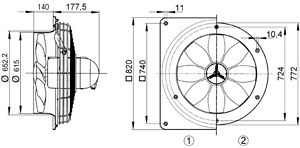 Produktausführung: Drehstrommotor, Ex II 2G Ex eb IIB+H2 T3/T4 Gb X / Ex II 2G Ex h IIB+H2 T3/T4 Gb X. Für Einsatztemperaturen von -20 °C <= Ta <= +60 °C. Für Be- oder Entlüftung umschaltbar. Besondere Eigenschaften: Axial-Wandventilator, explosionsgeschützt, Medium Gas. Explosionsschutz und Zulassungen nach ATEX und IECEx. Für alle Gase und Dämpfe der Ex-Gruppe IIA und IIB und zusätzlich für Wasserstoff qualifiziert. MAICO Ex-Ventilatoren erfüllen die Sicherheitsanforderungen der Europäischen Richtlinie RL 2014/34/EU für Geräte und Schutzsysteme in explosionsgefährdeten Bereichen. Für Zonen 1 und 2. Zündschutzarten: e - erhöhte Sicherheit und c - konstruktive Sicherheit. Schutzart IP 64. Schutzgitter auf der Saugseite, Berührungsschutz gemäß DIN EN ISO 13857. Einbau in jeder Lage möglich. Typenreihe: EZQ / DZQ .. Ex e mit quadratischer Wandplatte. EZS / DZS .. Ex e mit Stahlwandring. Laufrad: Axiallaufrad aus leitfähigem Kunststoff. Wuchtgüte der Motor-Laufradkombination G 6,3 nach Kategorie BV-3 gemäß ISO 14694. Förderrichtung: Die Förderrichtung ist gekennzeichnet. Standard Abluftbetrieb, Förderrichtung über Motor saugend. Drehstrommotor: Robuster Drehstrommotor mit Kugellager, wartungsfrei. Reversierbar. Reversierbetrieb: Der Volumenstrom verringert sich um ca. 35% bei anomaler Förderrichtung. Betriebsart S1 (Dauerbetrieb). Drehzahlregelung mit Transformator TR... möglich. Ausnahme: DZ.. 35/2 B Ex... Die Temperatur im Ventilatormotor wird durch Kaltleiter überwacht. Die Kaltleiter müssen an ein Auslösesystem (Sicherheitseinrichtung gemäß Richtlinie RL 2014/34/EU) angeschlossen werden, das den Ventilator bei zu hohen Temperaturen dauerhaft vom Netz trennt. Als Auslösesystem wird das MAICO-Kaltleiterauslösesystem MVS 6 oder TMS empfohlen. Elektrischer Anschluss: EZ .. Ex: Anschlussleitung ca. 0,5 m lang. DZ .. Ex: Anschlussleitung ca. 1,7 m lang. Separater Klemmenkasten, Ex-geschützt, mit Kabelverschraubung.Artikel: DZQ 60/6 B Ex e, Ausführung: Quadratische Wandplatte, Fördervolumen: 9450 m3/h, Drehzahl: 960 1/min, Laufradtyp: axial, Drehzahlsteuerbar: ja, Reversierbarkeit: ja, Spannungsart: Drehstrom, Bemessungsspannung: 400 V, Netzfrequenz: 50 Hz, Nennleistung: 295 W, cosphi: 0,65, INenn: 0,66 A, Imax bei UNenn: 1,32 A, Schutzart: IP 64, Wärmeklasse: F, Einbauort: Wand / Decke, Einbauart: Aufputz, Einbaulage: senkrecht / waagerecht, Material: Stahlblech, verzinkt, Material Gehäuse: Stahlblech, verzinkt, Farbe: verzinkt, Gewicht: 27,3 kg, Gewicht mit Verpackung: 33,02 kg, Nennweite: 600 mm, Breite: 820 mm, Höhe: 820 mm, Tiefe: 317,5 mm, Breite mit Verpackung: 845 mm, Höhe mit Verpackung: 845 mm, Tiefe mit Verpackung: 430 mm, EX-Bezeichnung nach ATEX-Richtlinie: Ex II 2 G, EX-Bezeichnung nach Norm: Ex eb IIB + H2 T3 Gb / Ex h IIB + H2 T3 Gb, Ta-Umgebungstemperatur: -20 °C <= Ta <= +60 °C, IA/IN: 4,5, Zeit tA: 290 sek, Betriebsart: S1, PTC DIN 44082: M 130, EG-Baumusterprüfbescheinigung: TÜV-A 19 ATEX0102 X, IECEx EPS 19.0018X, Temperaturklasse: T3, Wärmeklasse von Isolierstoffen Th. Cl.: 155 (F)
