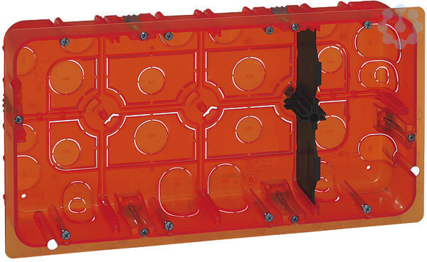 Universaldosen für Sonderformate. Für Unterputz- oder Hohlwandmontage mit entfernbarem Trennsteg. Geeignet für Schraub und Spreizbefestigung (Befestigungsschrauben vormontiert). Tiefe: 50 mm. 2 x 10 Module.