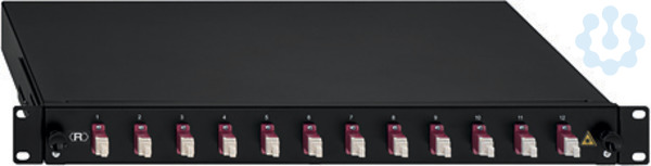 BasicLine-Spleissbox, ausziehbar, 19"/1HE, 12xLC-D, OM4, erika; - pulverbeschichtetes Stahlblechgehäuse; - werkseitige Portkennzeichnung; - ausziehbare Schubladenlösung; - im geöffneten Zustand nach unten neigbar; - mit frontseitigem Schnellverschluss (Push-Pull); - mit 2 Spleisskassetten zur Aufnahme von 12 oder 24 Pigtails; - eingelegter Crimpspleisshalter; - vorbereitet mit im 12-er - Bündel eingelegten Pigtails inkl. 12 x LC-D-Keramik-Kupplungen; - 24 LC-Faserpigtails G50/125 µm, 2 m, MM PC, Grade B; - mit Messprotokoll für alle Fasern inkl. Seriennummer; - 2 x rückseitige PG13,5/M20-Verschraubungen (je 2 x rechts/links); - 1 x PG13,5/M20-Verschraubung im Lieferumfang; - schwarz (ähnlich RAL 9005)