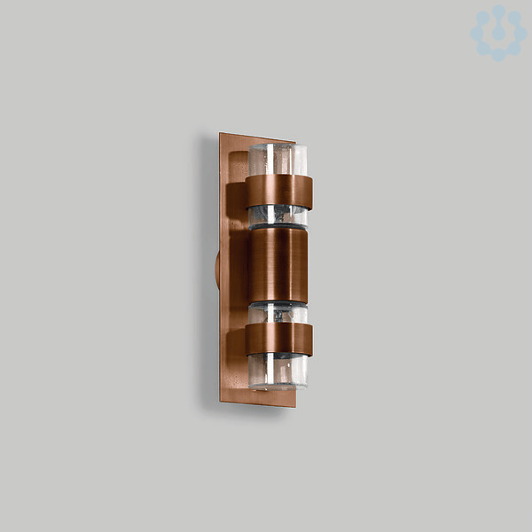 BEGA Wandleuchte 31225. Für 2 Lampen mit einer Leistung von max. je 40 W, Sockel E 14. Schutzart IP 44. Leuchte aus Kupfer. Kristallblasenglas mit Gewinde. Eine Leitungseinführung für Netzanschlussleitung bis Ø 10,5 mm, max. 3 x 1,5 qmm. Abmessungen: 115 x 320 x 105 mm. Montageplatten-Durchmesser: 90 mm.