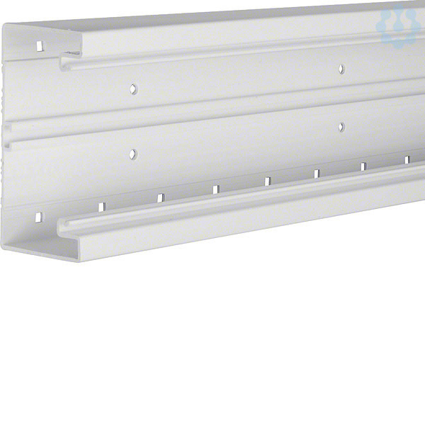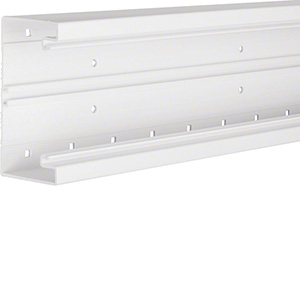 Brüstungskanal-Unterteil C-Profil BRH 70x130mm halogenfrei in reinweiß. Kanalunterteil zum Elektro-Installationskanal-System Brüstungskanal aus halogenfreiem Kunststoff nach DIN EN 50085-1 als Geräteeinbaukanal mit Oberteilbreite 80 mm zum Einbau handelsüblicher Geräte ohne Zusatzblenden. Halogenfreier Kunststoff ist flammwidrig und entwickelt in Verbindung mit Feuchtigkeit, z.B. Löschwasser, keine korrosiven Brandgase. Somit sind elektronische Geräte und Sachwerte besser geschützt. Mit Bodenlochung (allseitiger Bohrtolleranzausgleich) zur direkten Wandmontage und zusätzlicher Rechtecklochung zur werkzeuglosen Befestigung des Kanals mittels Clip-Technik auf Konsolen. Mit frontrastendem, werkzeuglosem Geräteeinbau zur Befestigung von Geräten und Geräteeinbaudosen mit Schnellbefestigung. Zusätzliches C-Profil als Geräteeinbaumöglichkeit. Kupplungen zur einfachen und passgenauen Kanalmontage, Trennwände und Leitungsrückhalteklammern als Zubehör erhältlich. Hinweis: Schall- und Brandschutz-Maßnahmen sind fachgerecht auszuführen.