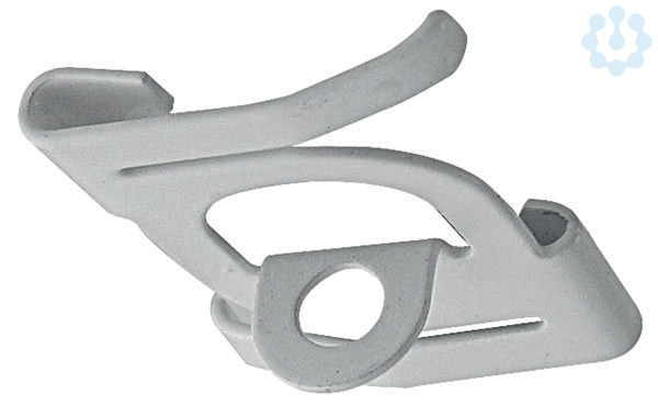 Eine Bohrung mit 7 Millimeter Durchmesser und ein Dreh-Klemmmechanismus machen Britclips® ACHW zu einem universell einsetzbaren Anschluss zum Beispiel für S-Haken und Schrauben an Deckenprofilen, Federstahl (Typ C67S nach EN10132), epoxidbeschichtet, weiß.