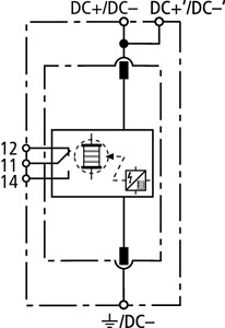 Einpoliger, koordinierter Blitzstromableiter DEHNsecure modular, Klassifikation Typ 1 nach EN 61643-11 auf Funkenstreckenbasis. Speziell für den Einsatz in DC-Stromkreisen geeignete Funkenstreckentechnologie. Zum Schutz von Gleichstrom-Verbraucheranlagen vor Überspannungen auch bei direkten Blitzeinschlägen. Zum Einsatz im Blitz-Schutzzonen-Konzept an den Schnittstellen 0A – 1.