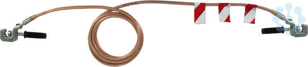 Einpolige Erdungs- und Kurzschließvorrichtung nach DIN VDE 0683-100 (EN/IEC 61230) für Baumaschinen, Hebezeuge und Bahndienstwagen; 8,5 m lang, beidseitig mit Universalklemme, Handgriff aus Kunststoff bestückt.