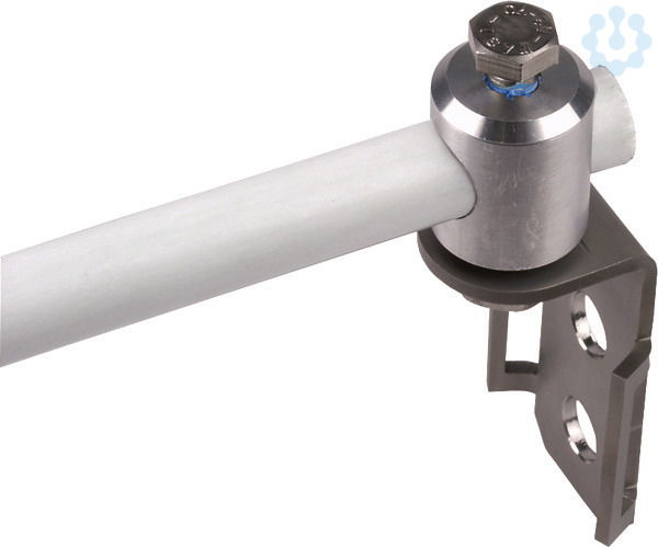 Bügel mit Befestigungsbolzen, zur Befestigung der Distanzhalter an Rohren. Zum Kombinieren mit Spannband (25 x 0,3 mm) mit Spannkopf.